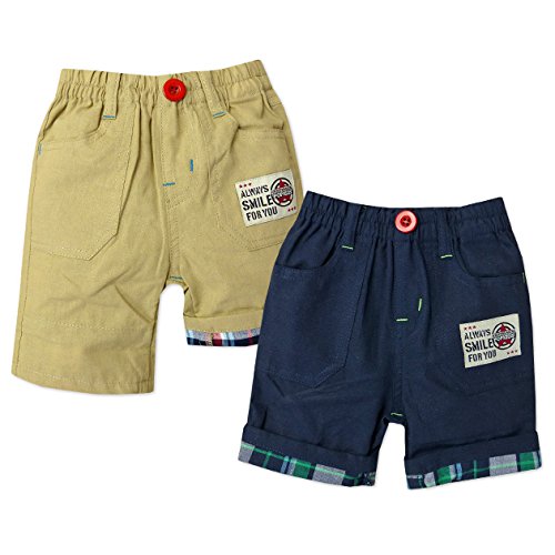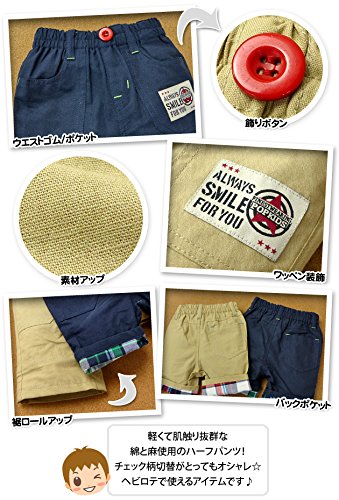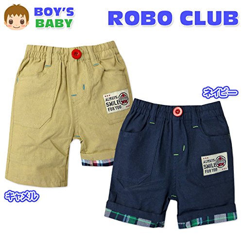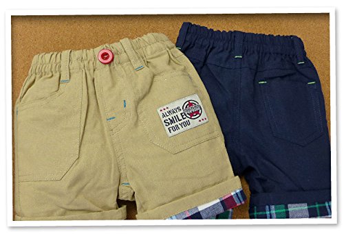 ベビー服 男の子 ハーフ パンツ ボトム チェック柄 ワッペン装飾 裾ロールアップ 飾りボタン 男児 ベビー (2.ネイビー/80cm)