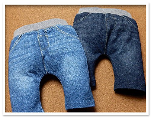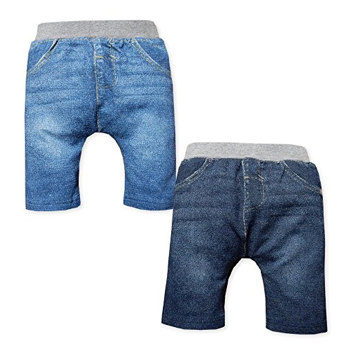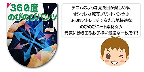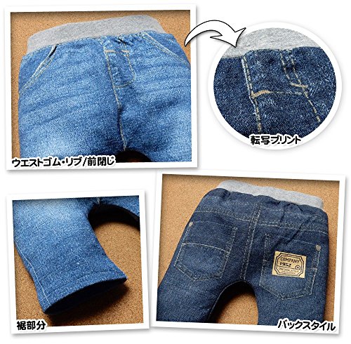 (ブルー/95cm)ベビー服 男の子 ハーフ パンツ ボトム 360度のびのびストレッチ ニット デニム風 転写プリント ウエストゴム 男児 ベビー