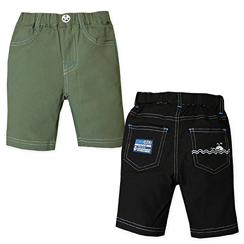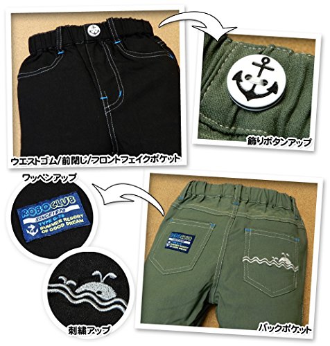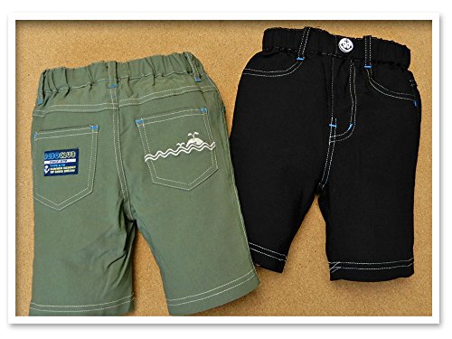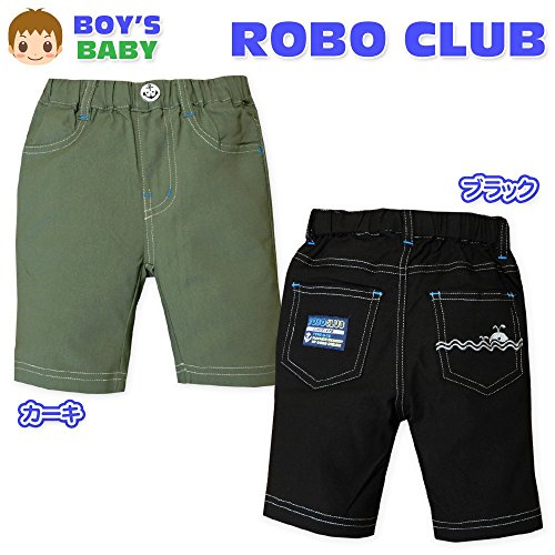 (ブラック/80cm) ベビー服 男の子 ハーフ パンツ ボトム 接触冷感 スーパーストレッチ くじら刺繍 イカリボタン ワッペン ウエストゴム 男児 ベビー