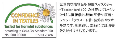 - 世界的織物証明機関スイスOeko-tex Standardの検査を合格しています!!