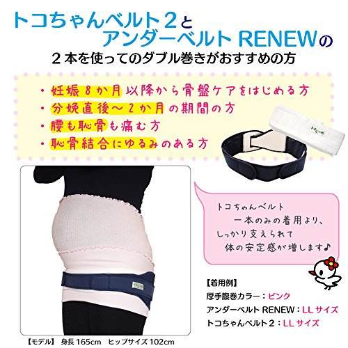 - 妊娠中~分娩産後~産後の骨盤ケアに最適です。トコちゃんベルトと併用することで骨盤がより安定して支えられます。腹巻→アンダーベルトRENEW→トコちゃんベルト→ショーツの順で着用します。