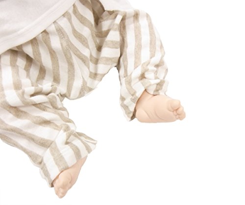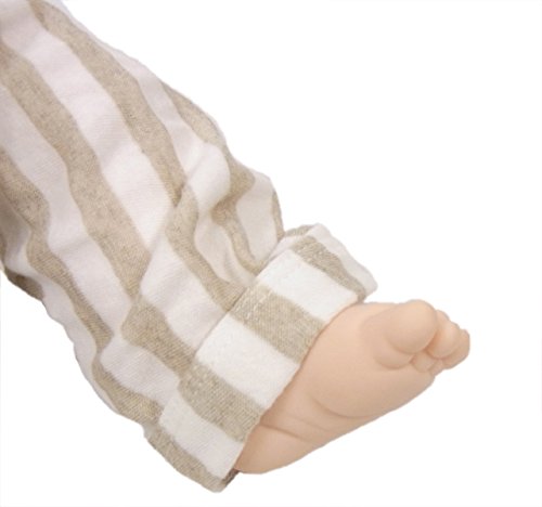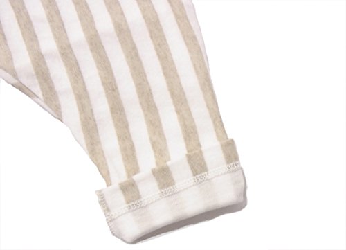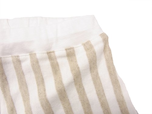 グレーとホワイトのストライプが新鮮な、レギンスパンツ。 オーガニックコットンの薄い天竺と二重になっているので肌触りはなめらかです。 裾を折り返して裏の白を見せるとポイントになります。コーディネートのアクセントにおすすめの1枚です。 90cm:総丈41cm/ウエスト42cm/裾口幅9cm