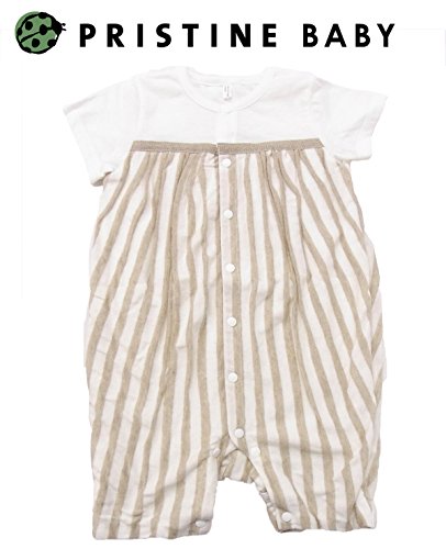 【プリスティン】リネンコットン ストライプ切り替えショートオール70cm