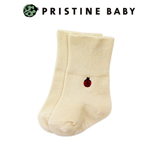 シンプルなデザインのクルーソックス。 どんなお洋服にも合ううれしいアイテムです。 てんとう虫のワンポイントがかわいい靴下です。お色はナチュラルとブラウンの2色、サイズは3サイズのご用意です。