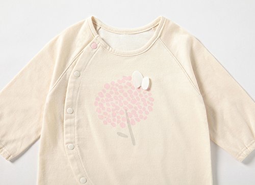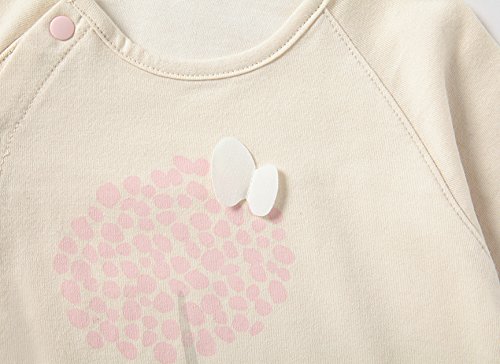 やわらかく、使いやすい60/2天竺にかわいらしいピンクのお花が咲きました。 ひらひら飛んできたオーガニックコットンのちょうちょもポイントです。 女の子のギフトにおすすめの一枚です。