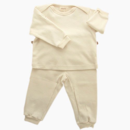 オーガニックコットン 両肩開きボタン付きパジャマ100cm:厚くもなく薄くもなく丁度よい厚さのパジャマ上下です!