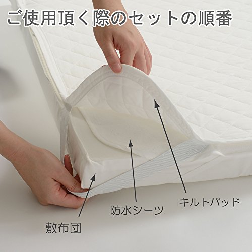 日本製 防水シーツ、キルトパッド2点セット ホワイト
