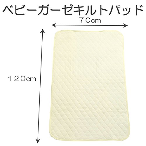 ベビー用のキルトパッドです。 ポリエステル綿を生地で挟み、ずれないようにキルト加工を施しているパッドです。赤ちゃんの汗や湿気を吸収する汗取りの役割としてお使いください。 ベビー用防水シーツと合わせてお使いいただくと、敷布団の汚れ防止に効果的です。