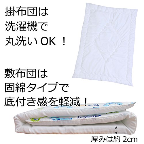 - 保育園や幼稚園でのお昼寝用のお布団セット。帰省や旅行時にも便利。※新生児のねんねにはご使用しないでください。