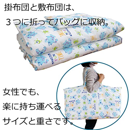お昼寝に最適な、持ち運び便利なモンスターズインクのお昼寝布団セット。便利な防水シーツが付いた7点セット。 カバーはファスナータイプ、敷布団はカタワタタイプ。 保育園のお昼寝に、お出かけや帰省時にも便利なセットです。 洗い替えに便利なカバーセットも、販売しています。