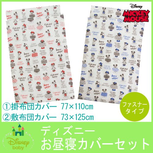 ディズニー ミッキー ミニー お昼寝布団カバー 掛カバー 敷カバー ファスナータイプ 保育園 (赤(ミニー))