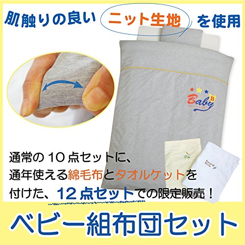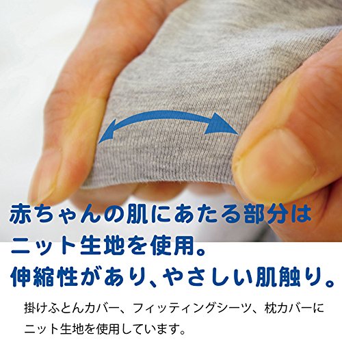 ニット生地を使用した、12点ベビー組布団セット。 伸縮性があって、やわらかな肌ざわりは 赤ちゃんにやさしい素材です。