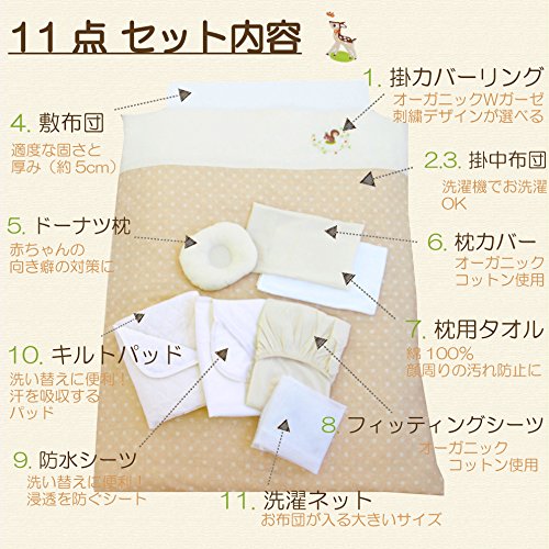 - 日本オーガニックコットン協会(JOCA)認証のオーガニックを使用。新米ママさんにも、何を贈ったら良いか迷われている方にも、安心のお布団セットです。