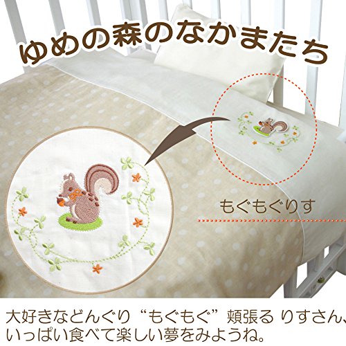 - 赤ちゃんにやさしいオーガニックのダブルガーゼを使用した、日本製のベビー布団セットです。(通常のベビーベッドのサイズ 70×120cmに対応したお布団セットです)