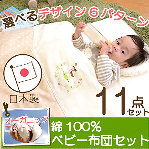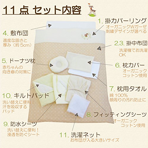 - 赤ちゃんにやさしいオーガニックのダブルガーゼを使用した、日本製のベビー布団セットです。(通常のベビーベッドのサイズ 70×120cmに対応したお布団セットです)