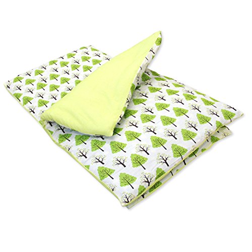 【リバーシブル】お昼寝布団カバーセット 【2重ガーゼ生地 パイル生地 掛カバー敷きカバー】 (ツリー(グリーン))