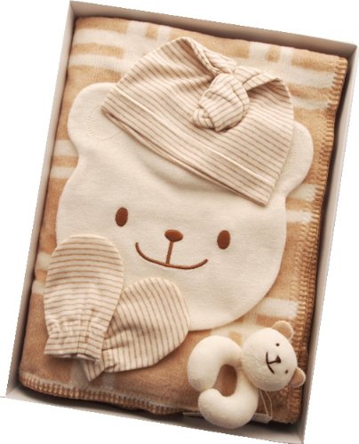 ご出産祝いに!オーガニックコットン 綿毛布ブラウンプチケットスタイギフトセット