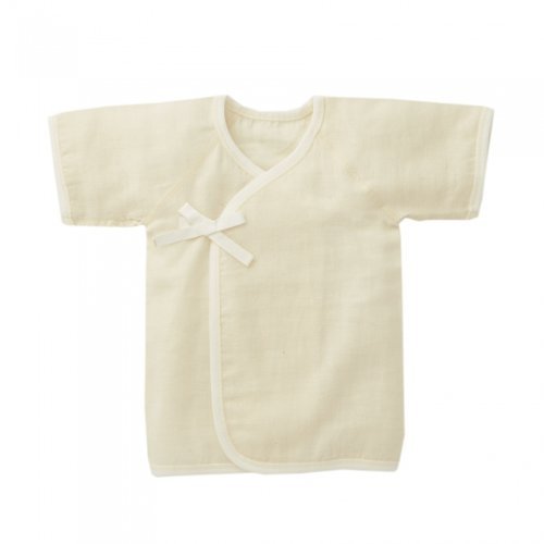 やわらかなダブルガーゼの短肌着です。ナチュラルとホワイトの配色で、ベビーのピュアなイメージを表現しています。お洗濯:お洗濯には合成洗剤は避け、出来るだけ化学物質の入っていない洗剤をお使いください。塩素系漂白剤や蛍光増白剤などのご使用はお控えください。洗濯ネットに入れてお洗濯していただくと、オーガニックコットンの風合いを長くお楽しみいただけます.高温乾燥機は使用せず、なるべく陰干しをおすすめします