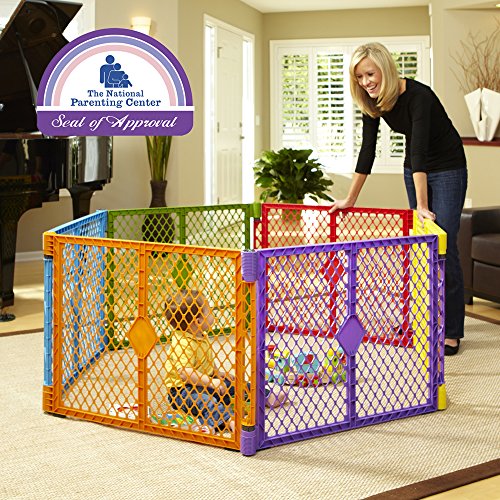 - North States Superyard Colorplay 6-Panel Play Yard, Portable Indoor-Outdoor, Multi-Colored