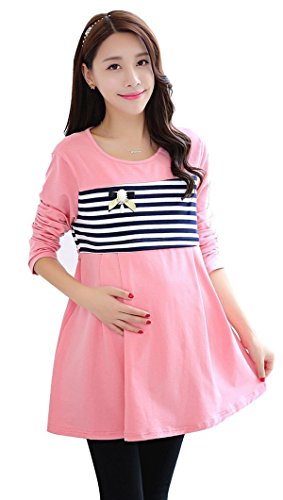 (mind items) マタニティ ウェア ワンピース ボーダー タイプ 授乳口 付き(ファスナー43センチ) Mサイズ Lサイズ XLサイズ (L ピンク)