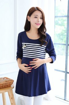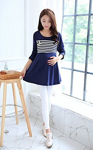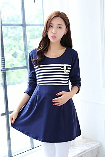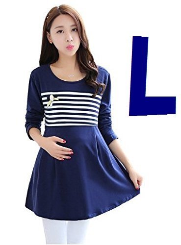 (mind items) マタニティ ウェア ワンピース ボーダー タイプ 授乳口 付き(ファスナー43センチ) Mサイズ Lサイズ XLサイズ (L ネイビーブルー)
