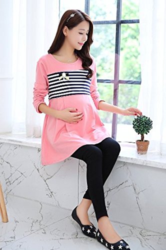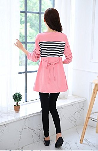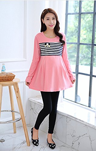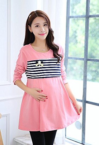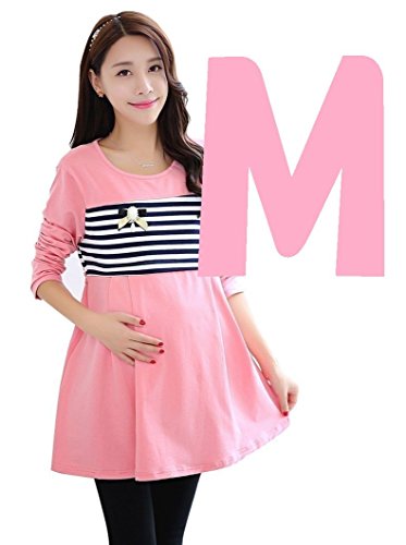 (mind items) マタニティ ウェア ワンピース ボーダー タイプ 授乳口 付き(ファスナー43センチ) Mサイズ Lサイズ XLサイズ (M ピンク)