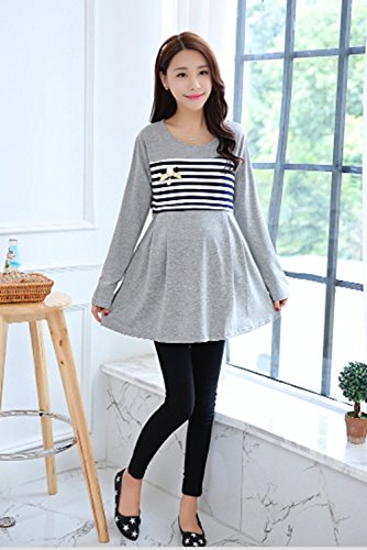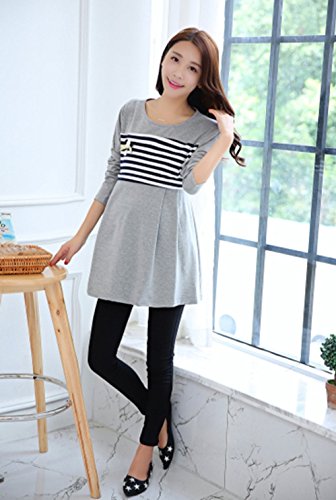 (mind items) マタニティ ウェア ワンピース ボーダー タイプ 授乳口 付き(ファスナー43センチ) Mサイズ Lサイズ XLサイズ (L グレー)