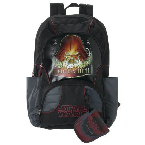Darth Vader glowers from this full-size backpack, which ably holds your child?s school supplies in spacious, zippered compartments: Star Wars Darth Vader Backpack Color: Red.