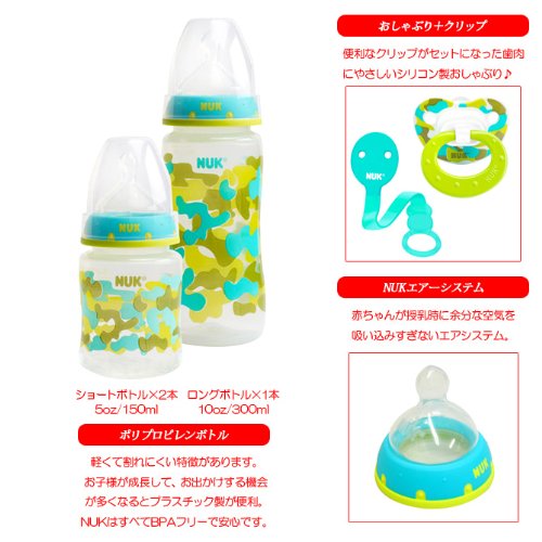 [ヌーク]NUK Baby Bottle&Pacifier Gift Set/哺乳瓶&おしゃぶり ギフトセット"カモフラ" ボトル ほ乳びん クリップ