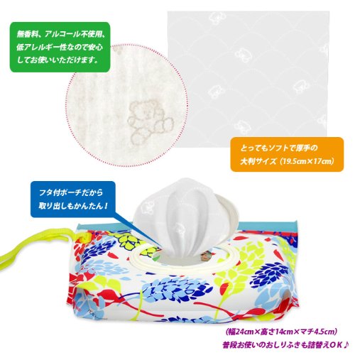 かわいいクマさんのエンボス加工が施されたワイプは、ソフトなのに厚手でしっかりとした大判サイズ。