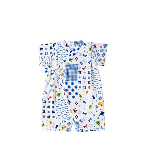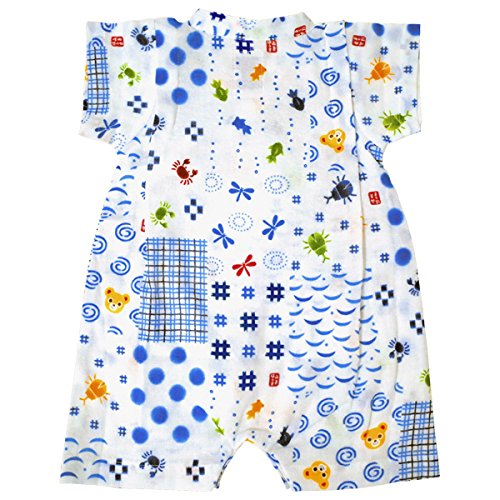 カブトムシやトンボや波型や井型マーク☆夏の風物詩がパッチワーク柄にプリントされたプッチーの甚平オールです