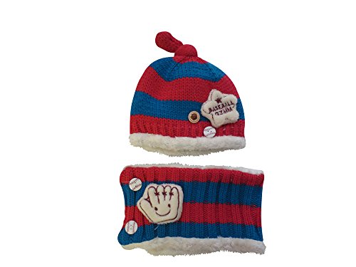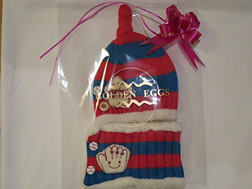 【GOLDEN EGGS】選べる4色 ニット帽子&マフラー セット リボン付き キッズ 子供用 (ピンク&ブルー)