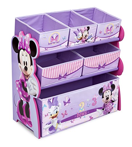 Disney Multi-Bin Toy Organizerは女の子の部屋をかわいく飾ってくれます。Organaizer全面に贅沢に施されたミニーマウス他Disneyのキャラクター達 上中下の3段式、計6箇所と収納スペースが分かれていておもちゃなどを種類別に収納する事が出来てとても便利です。