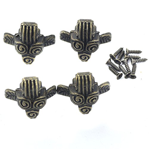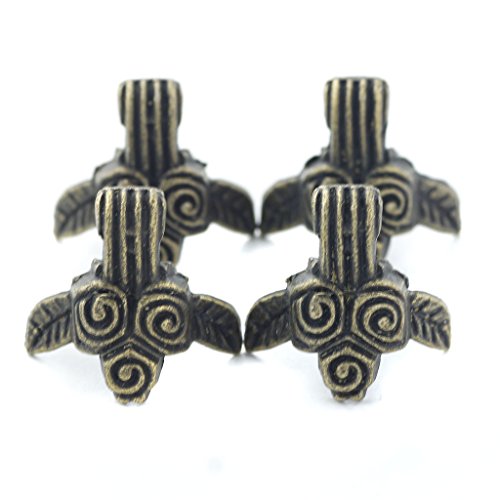 【ノーブランド 品】4本 フラワーパターン ボックス 足 家具 コーナー フット 装飾 プロテクター カバー 青銅