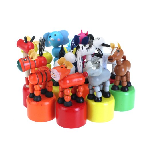 【ノーブランド品】木製 玩具 アニマル プレスアップ フィギュア 人形 プラントーイ