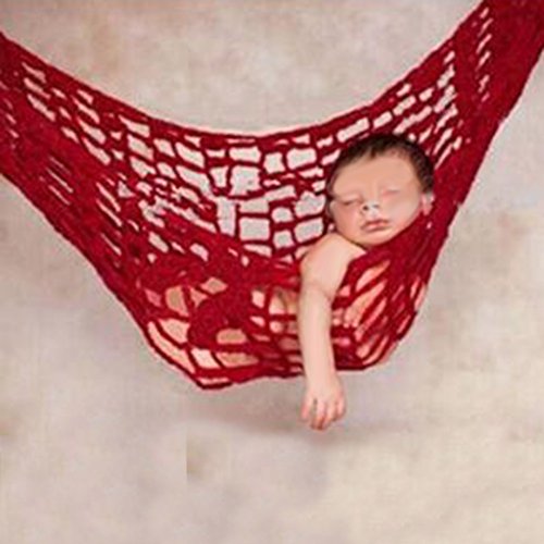 【ノーブランド 品】手作り かぎ針編み 赤ちゃん ニット ハンモック 写真の小道具 3色 - 赤