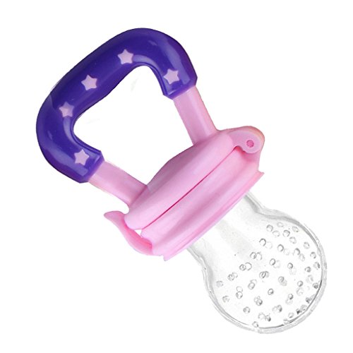 赤ちゃんが食べ物を楽しむためにシリコーンストレーナネットを吸うためにハンドルを保持します。