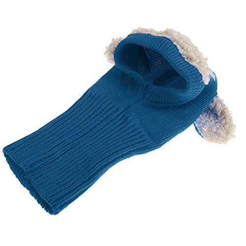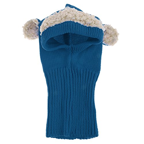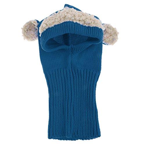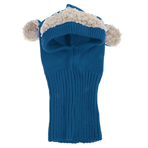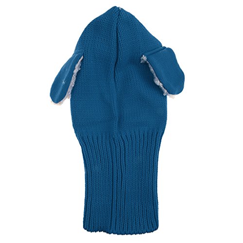 赤ちゃん 幼児 冬 ビーニー かぎ針 編み ニット 暖かい 帽子 キャップ スカーフ ショール ウサギ耳 全5色 - 青