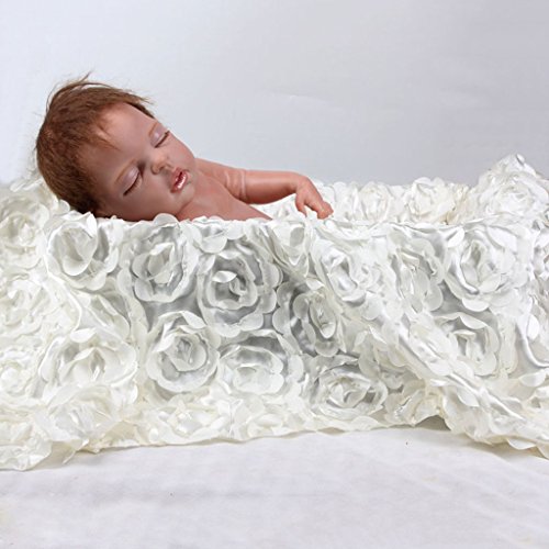 【ノーブランド品】新生児 3D 毛布 ブランケット バラ マット ローズパタン 写真撮影 背景 小道具 柔らかい 全10色 - クリーム