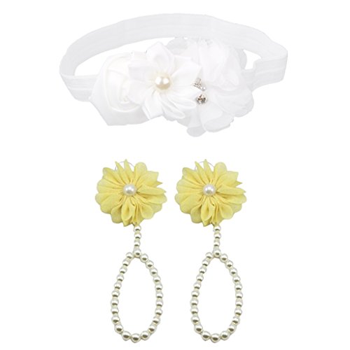 【ノーブランド品】 赤ちゃん ビーチ 写真撮影 小道具 ヘアバンド 人工パール 裸足 サンダル アンクレット チェーン 全2色 - イエロー