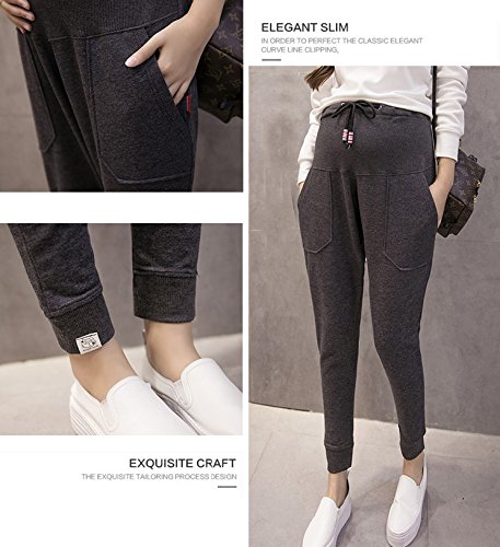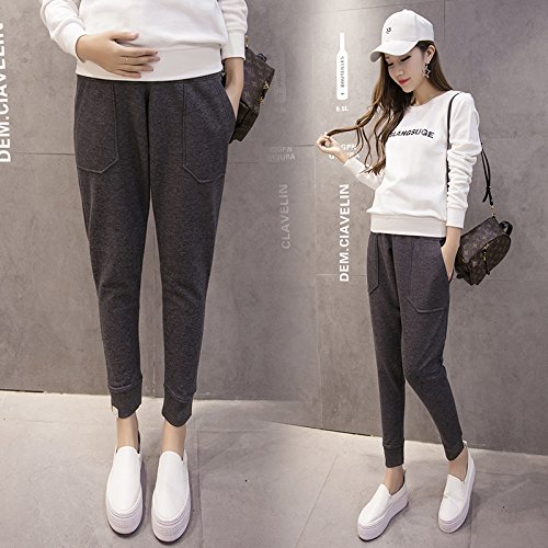 ママ&キッズ】Poche 秋冬 全2色2種類 マタニティー ジョガーパンツ 裏起毛 ウエストリブ ゆったり 楽ちん モコモコ 暖かい M~2XL (XL, 厚手グレー)