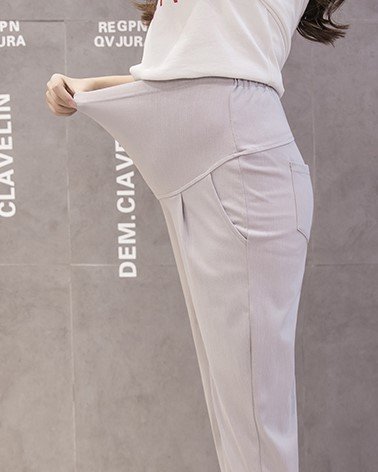 【ママ&キッズ】Poche 2017 春夏 全4色4サイズ マタニティー ジョガーパンツ 薄手 ウエストリブ ゆったり 楽ちん M~XXL (XXL, グレー)