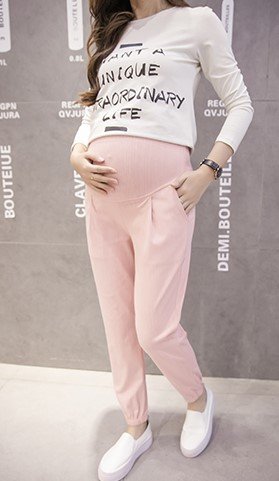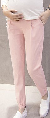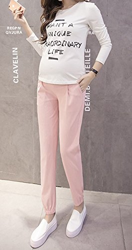 【ママ&キッズ】Poche 2017 春夏 全4色4サイズ マタニティー ジョガーパンツ 薄手 ウエストリブ ゆったり 楽ちん M~XXL (M, ピンク)