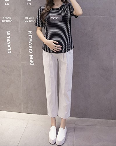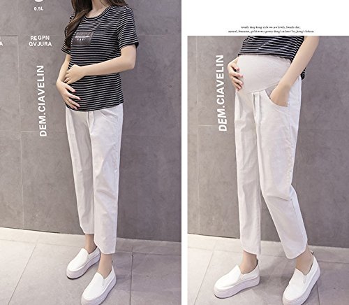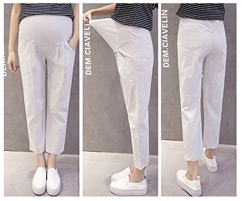 【ママ&キッズ】Poche 2017 春夏 全4色4サイズ マタニティ アンクル パンツ 綿麻 薄手 涼しい ウエストリブ ゆったり M~XXL (XXL, グレー)