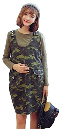 【ママ&キッズ】Poche マタニティ 迷彩 ジャンパースカート 授乳口付き 長袖 カットソー ワンピース チュニック サロペット おしゃれ 大きいサイズ ぽっちゃり 特大サイズ M L XL カーキ グリーン (L)