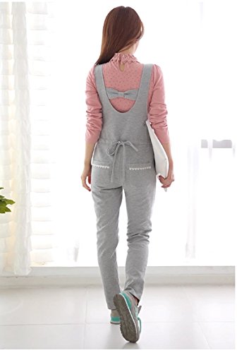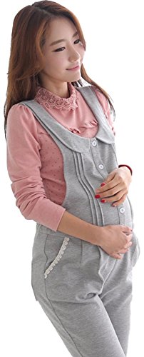 【ママ&キッズ】Poche マタニティー 2色 可愛い サロペット スエット スリム ゆったり 楽ちん ストレッチ ウエストリブ オールインワン オーバーオール 大きいサイズ ぽっちゃり 大きめ 特大サイズ M L XL XXL グレー ダークグレー (L, ライトグレー)