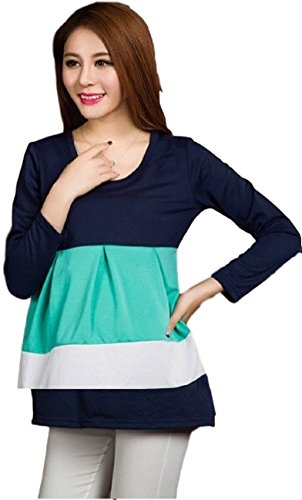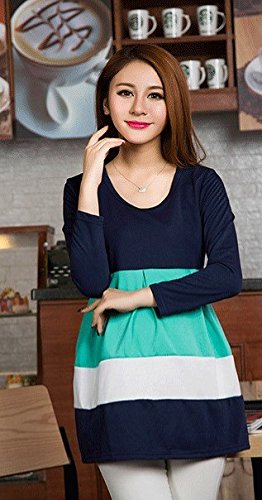 【ママ&キッズ】Poche マタニティー 2色 ボーダー マリン カットソー トップス 長袖 チュニック 楽ちん ゆったり 大きめ レディース ぽっちゃり 大きいサイズ ワンピ 特大サイズ M L XL XXL XXXL 2XL 3XL グリーン ピンク ネイビー (L, グリーン)