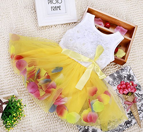 【花びらドレス ベビー服】80,85,90,95, 子供服 ハーフバースデー 100日 バースデー 記念撮影 スタジオフォト 女の子向け ガールズ (90, イエロー)