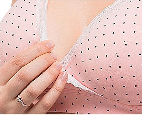 【ママ&キッズ】Poche マタニティ 全6色 授乳 ブラジャー クロスタイプ 下着 産前 産後 グリーン ネイビー ピンク イエロー 肌色 ドット M L XL XXL (XXL, ネイビー、ドット)