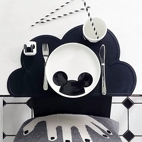 【モノトーンラボ】ランチョンマット 食事マット ベビー 子供用 シリコン 雲柄 クラウド(ブラック)